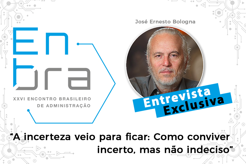 José Ernesto Bologna participou de uma entrevista ao CRA-RJ para falar um pouco mais sobre painel “A incerteza veio para ficar: como conviver incerto, mas não indeciso”, que ministrará no XXVI Encontro Brasileiro de Administração, entre os dias 6 e 8 de agosto, no Centro de Convenções da Bolsa do Rio. O tema é relevante tanto para o profissional da Administração, quanto para a população num modo geral.
