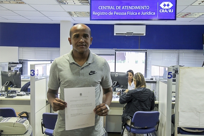 O Técnico em Administração Leonardo Moisés da Silva Vieira, sargento temporário do Exército Brasileiro, foi o primeiro profissional de nível médio a se registrar no CRA-RJ, nesta segunda-feira (15), sob o número 41-00001. A medida cumpre a exigência feita pela Força Armada, para que ele permanecesse na função para qual passou.