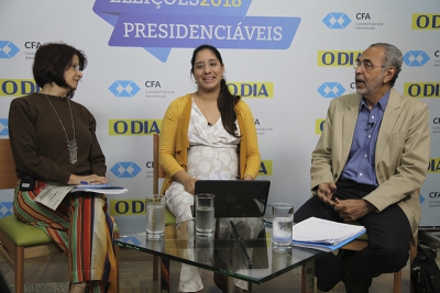 Para o primeiro debate, os convidados foram o Adm. Cesar José de Campos, coordenador do Programa Delegacia Legal; e a professora Paula Poncioni, membro do Conselho do Fórum Brasileiro de Segurança; com a mediação da jornalista Bruna Fantti. Eles discutiram o tema ‘Segurança Pública’ a partir das propostas dos presidenciáveis. Entre os assuntos, esteve a liberação das armas de fogo. Para Campos, os candidatos não especificaram da forma necessária como será feito o controle da liberação ou não das armas de fogo e das munições em todo país, algo primordial. Já Poncioni, demonstrou diversos dados do Fórum, dentre eles que 94.9% das armas apreendidas em 2017 não foram cadastradas no sistema da Polícia Federal.