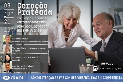 A Comissão de Direitos Sociais da Associação Brasileira de Advogados (ABA) vai promover nesta quarta-feira (09), às 16h, no Instagram, uma mesa redonda sobre o projeto ‘Geração Prateada’, um programa de governo que visa a empregabilidade e o empreendedorismo para população com mais de 60 anos. O evento tem o apoio do CRA-RJ e do Núcleo de Empreendedorismo e Inovação da Faculdade Cesgranrio.