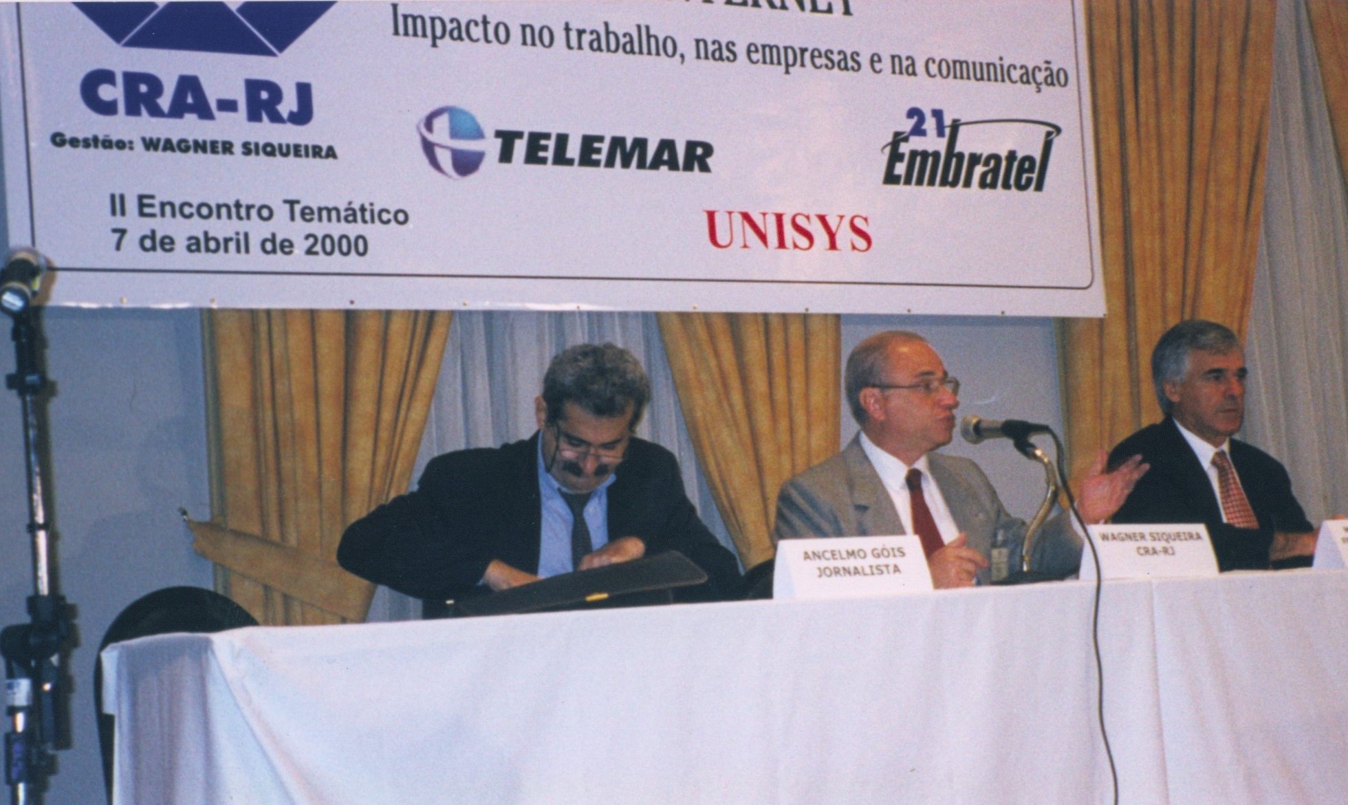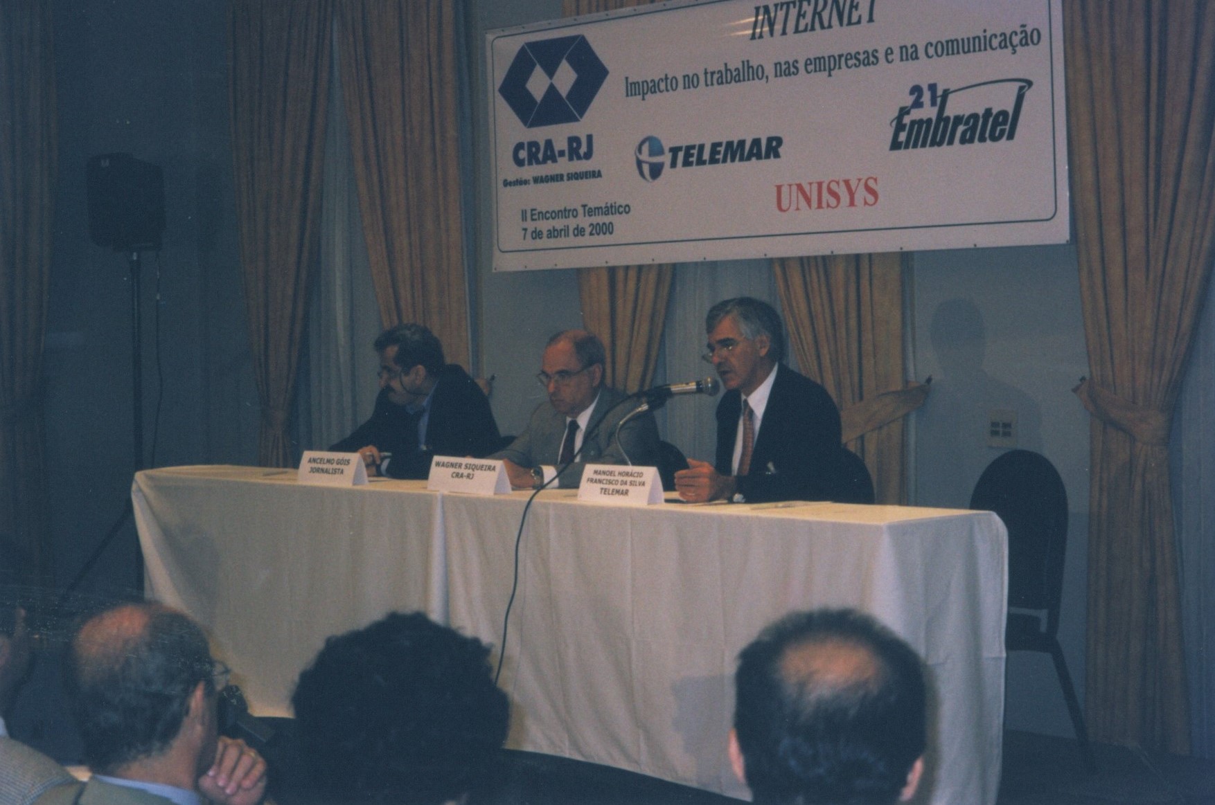 Muito antes do boom dos smartphones e das redes sociais, no dia 07 de abril de 2000, o CRA-RJ realizou um encontro temático para discutir o impacto da internet no trabalho, nas empresas e na comunicação. O evento, conduzido pelo Adm. Wagner Siqueira, presidente do Conselho à época, contou com a participação de representantes da Embratel, da Telemar e jornalistas de renome, como Ancelmo Gois, colunista do O Globo.