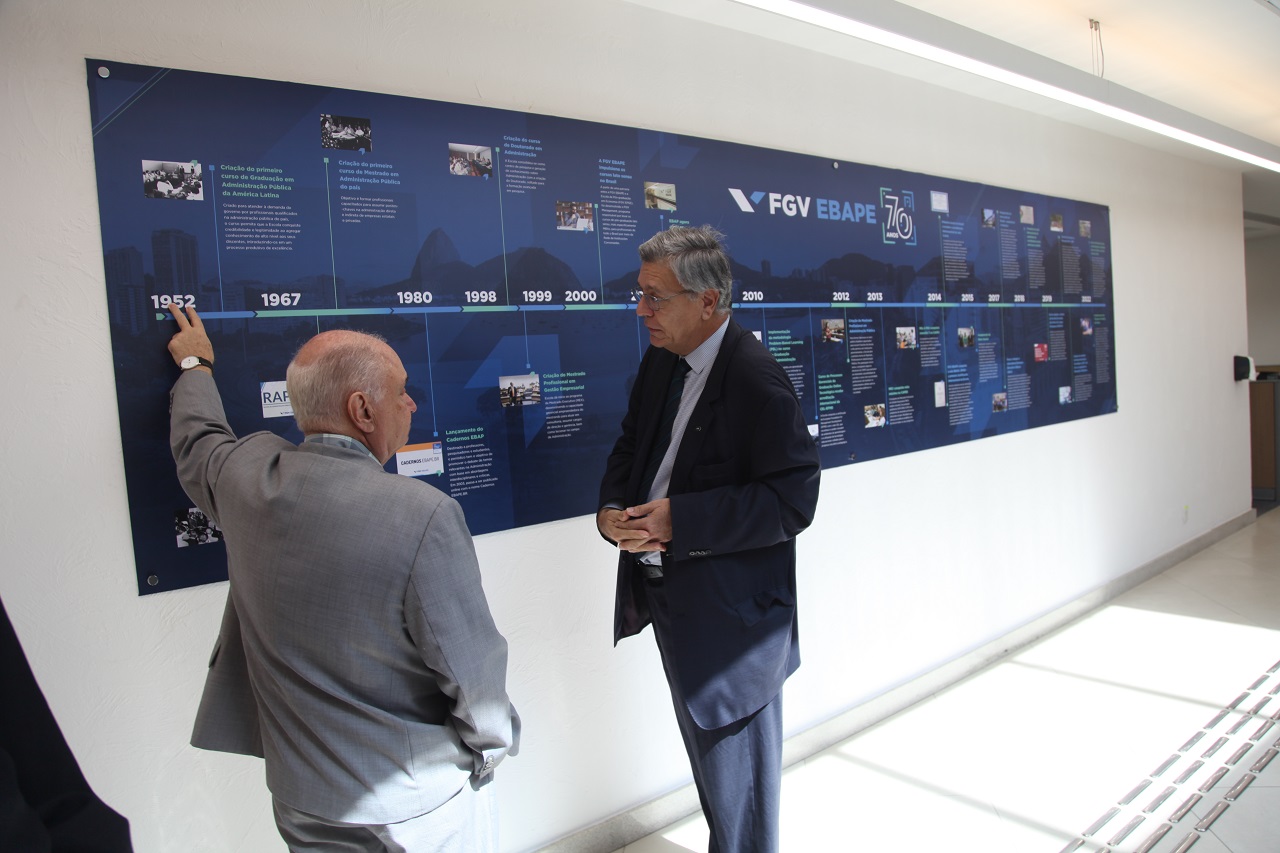 De acordo com seu site, a Ebap “surgiu em 1952, a partir da parceria entre a FGV e a ONU para atender a demanda por profissionais qualificados em Administração Pública no Brasil. Em 2002, a Escola começou a oferecer formação voltada também no setor privado e passou a se chamar FGV EBAPE. Desde então, se consolidou como uma referência internacional no segmento”. Aluno do curso de Administração da Ebape, tendo se formado em 1970 e também ex-professor horista da Escola, Wagner Siqueira ressaltou a importância da proximidade entre as instituições.