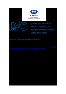 Perfil e objetivos da publicação: A RAD – Revista Administração em Debate é um periódico do Conselho Regional de Administração do Rio de Janeiro, que tem a missão de divulgar trabalhos científicos relevantes visando fomentar a pesquisa e idéias inovadoras no campo da Ciência da Administração e áreas correlatas. É possível ler as edições acessando o site do CRA-RJ.