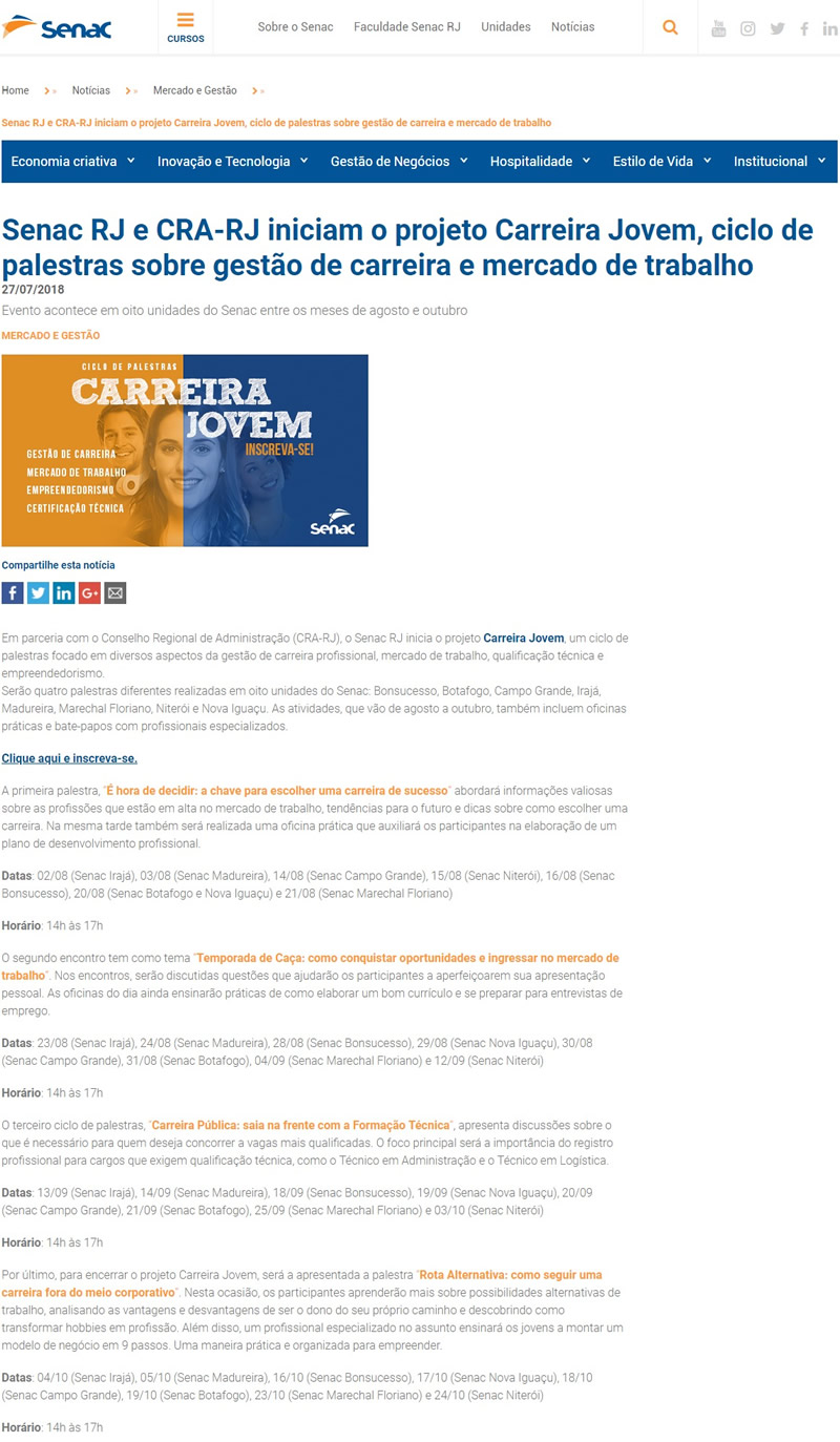 usercassiocrarj2018-07-27T11:14:33-03:0027/07/2018|Categories: CRA-RJ na Mídia, CRA-RJ na Mídia - 2018, Sala de Imprensa|Tags: Carreira Jovem, Gestão de carreira, Mercado de Trabalho, Palestras, senac-rj|