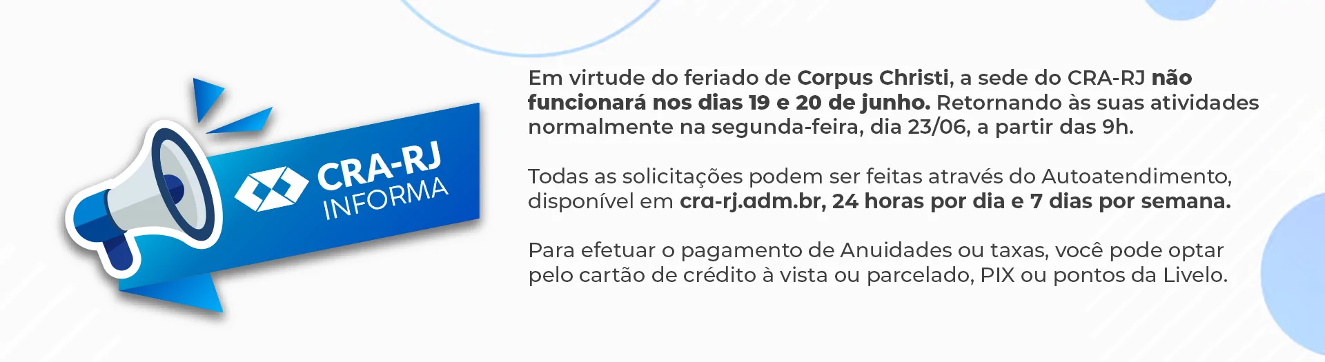 Por Érika dos Anjos| Em um marco significativo para a profissão de Administração no estado, o Conselho Regional de Administração do Rio de Janeiro (CRA-RJ) registrou a impressionante marca de 640 novos profissionais registrados somente no mês de setembro, quando comemoramos 60 anos da regulamentação da profissão. Este resultado reflete o compromisso contínuo do Conselho com a valorização da Administração e a qualificação do mercado de trabalho. Estes profissionais foram registrados da seguinte forma: Bacharel (290), Tecnólogo [...]